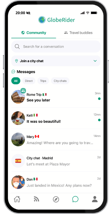 Download GlobeRider from the App Store or Google Play, create an account, and start exploring traveler profiles. You can connect with other travelers, join travel groups, and share your adventures.